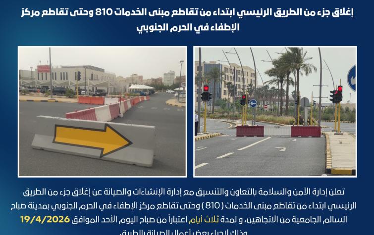 صورة 19.أبريل.2026 تنويه هامتعلن إدارة الأمن والسلامة بالتعاون والتنسيق مع إدارة الإنشاءات والصيانة عن إغلاق.. اقرأ المزيد