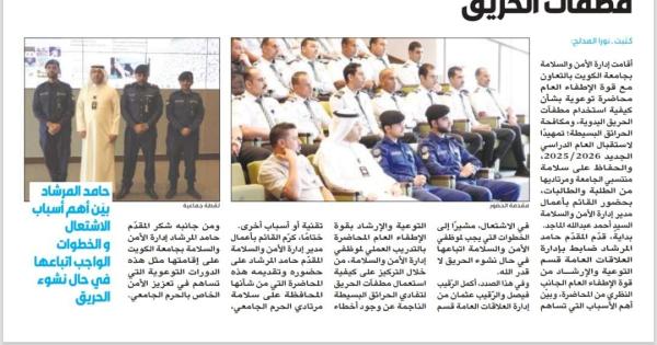 في ضوء التنسيق المتواصل بين جامعة الكويت مُمثلةً في (إدارة الأمن والسلامة) ووزارة الصحة وفق البروتوكول المُتفق عليه بشأن فتح قناة اتصال لتعزيز مبدأ الشراكة المجتمعية في جميع..
