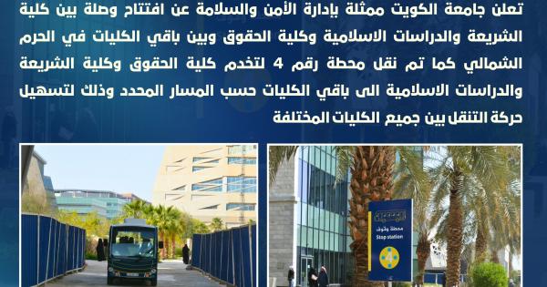 Kuwait University, represented by the Security and Safety Department, announces the inauguration of a transport link connecting the College of Sharia and Islamic Studies and the..